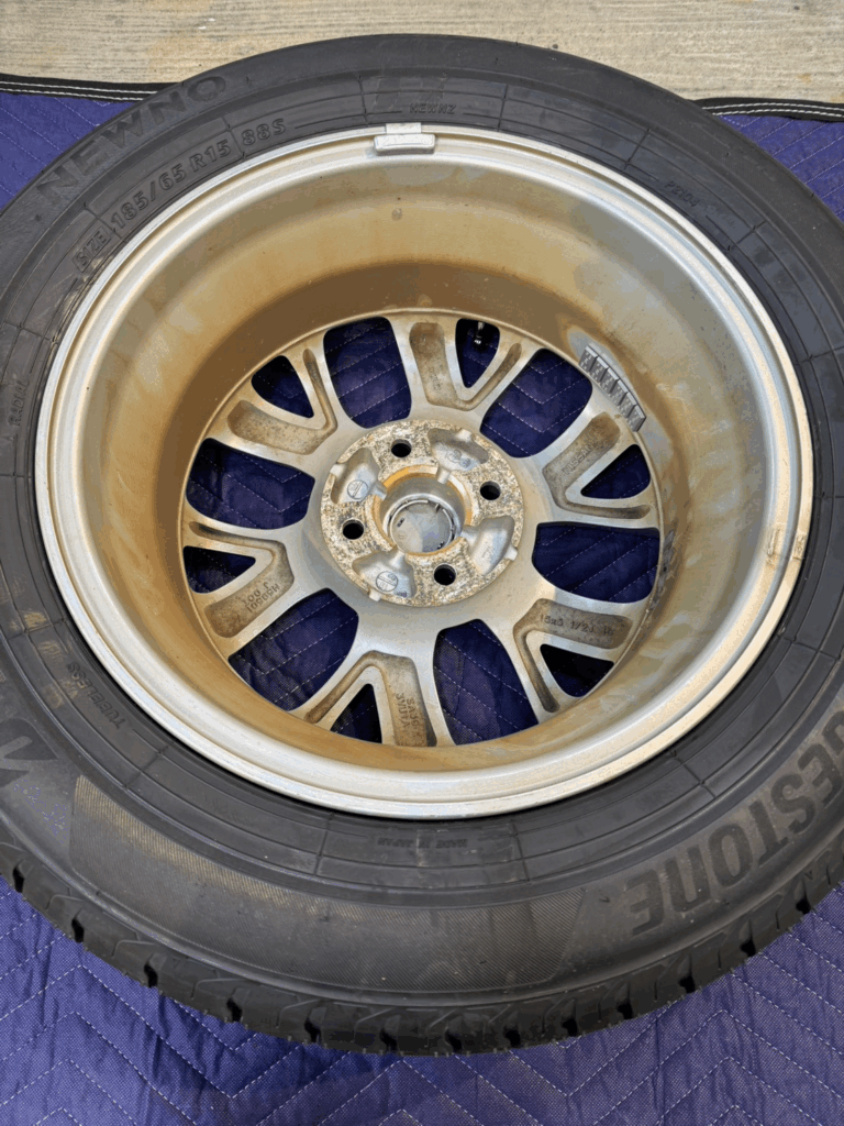 画像のように汚れたまま保管しているより綺麗な状態で保管しているほうがホイールも腐食や劣化から抑えられます。